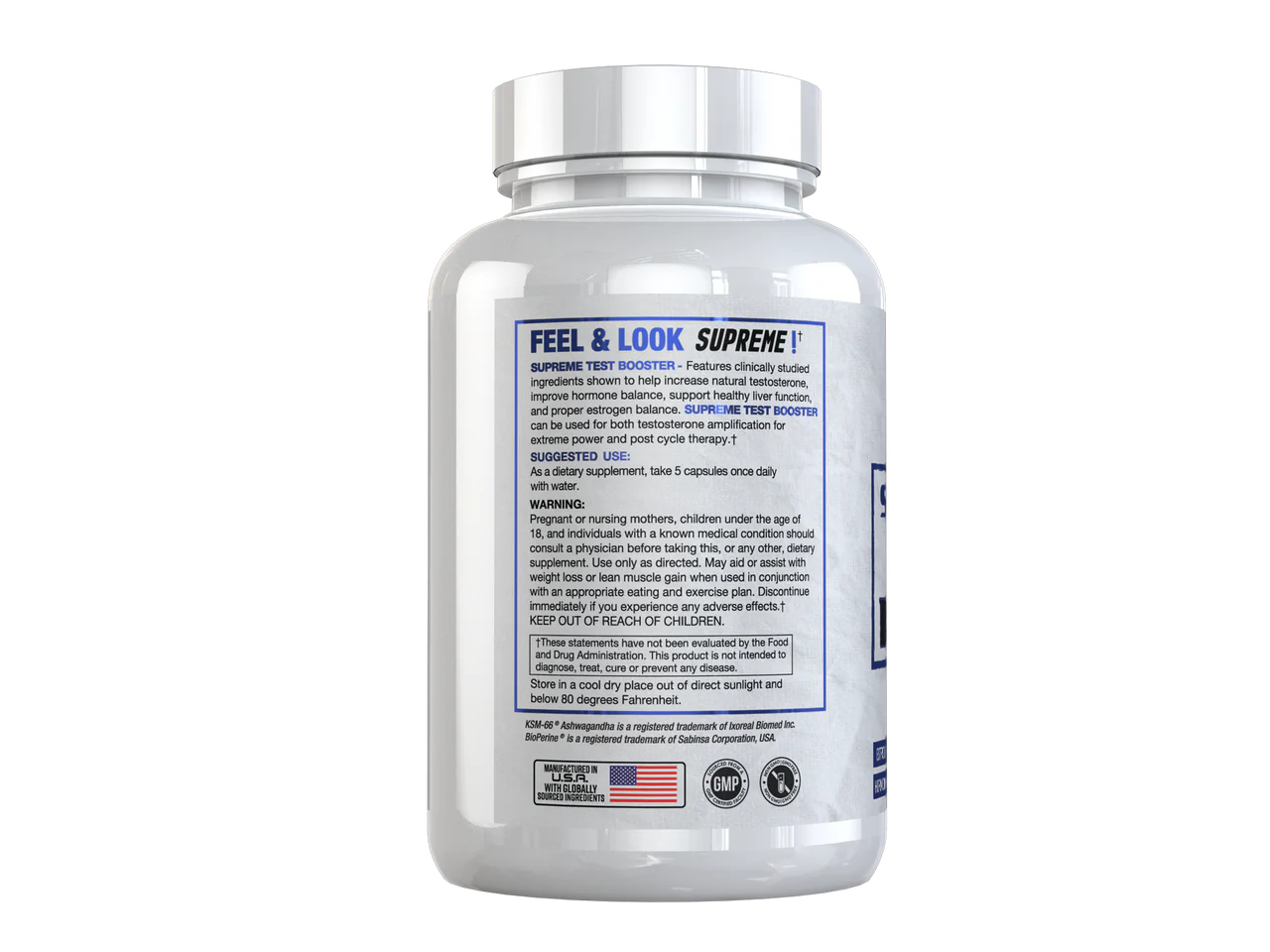 Features clinically-studied ingredients shown to increase natural testosterone, improve hormone balance, support healthy liver function, and promote proper estrogen balance. Supreme Test Booster can be used for both testosterone amplification for extreme power, and post-cycle therapy. 30 servings per container.